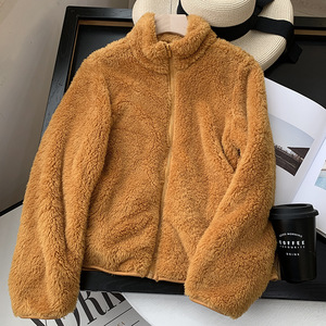 24秋冬新作ベーシック厚手スタンドカラーぬいぐるみ風ルーズショートコート女性用449753