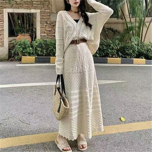 フレンチスタイルのファッショナブルな中空セータースーツ2025新しいスタイルの女性のスカートレースアップツーピーストレンディセット