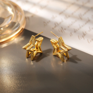 中空デザインの二層五芒星イヤリング、ハイエンドのクールなメタルスタイルのイヤリング、女性のファッショナブルな個性、多用途のイヤリング
