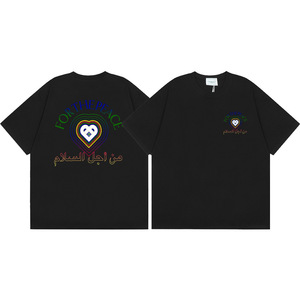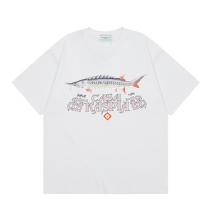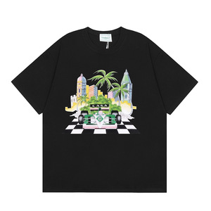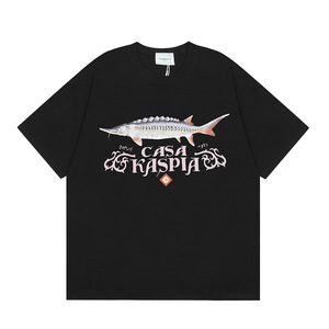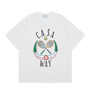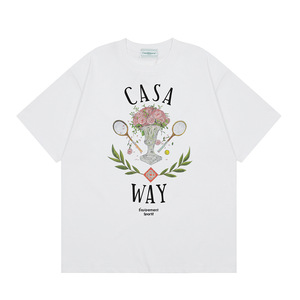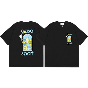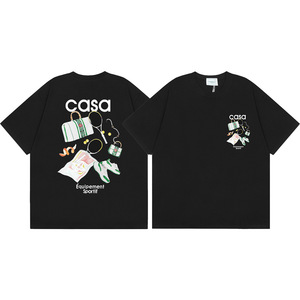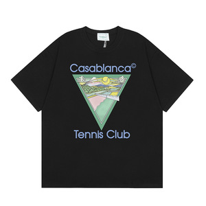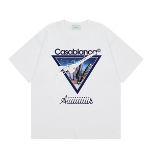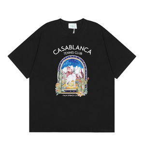 クロスボーダー2025夏服カサブランカドア枠ロゴプリント男女ゆるい半袖tシャツ重ポンド綿
