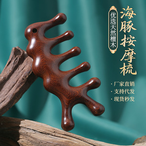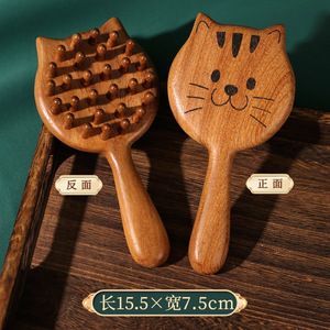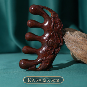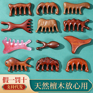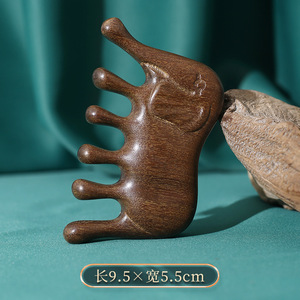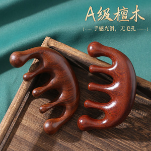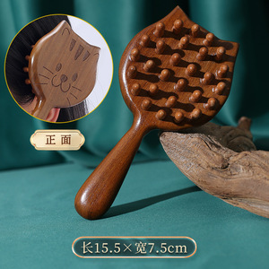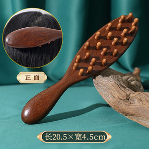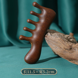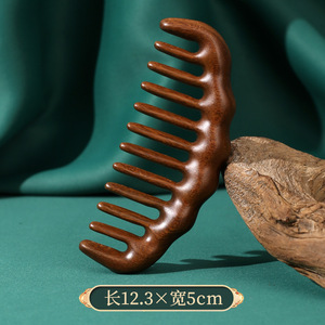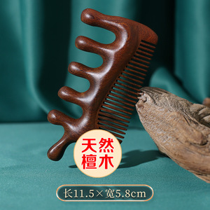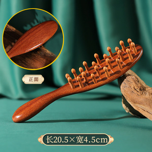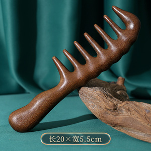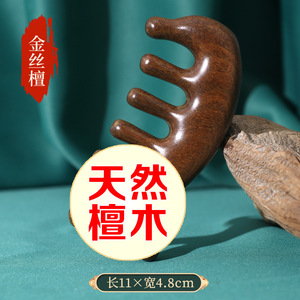 A グレードゴールドシルクグリーンサンダルウッド木製マッサージコームヘッド経絡コーム木製コーム大きな広い歯マッサージコーム厚み