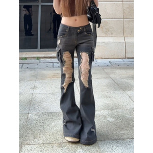 アメリカンスタイルのダメージ加工ホットガールリッピングスリムジーンズレディースローウエストマイクロフレアパンツレディースジーンズ