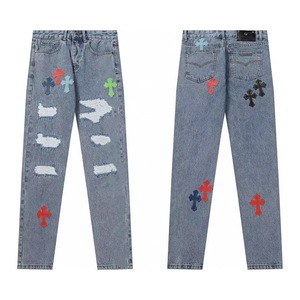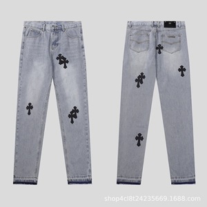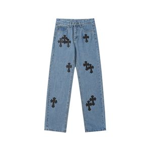 24 正しいバージョン CH クロウクロスレザー刺繍ウォッシュジーンズカップルルーズデニム卸売ドロップシッピング