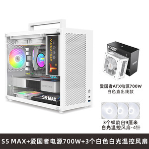 S5-MAX ホワイト シャーシ + パトリオット 700W 電源 + 3 つの白色光ファン