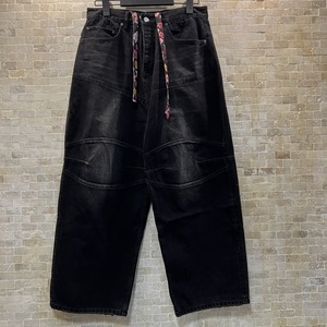 高版本巴黎B家25FW春夏新款重工拼接花绳牛仔裤Os宽松版型情侣款