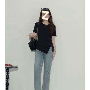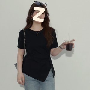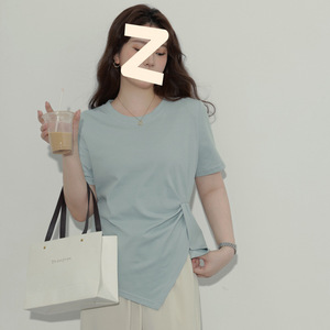 大きいサイズの太ったmm200斤の半袖のゆったりした丸首の正肩のtシャツの女性の新型の初秋の修身はやせていることが見えます。