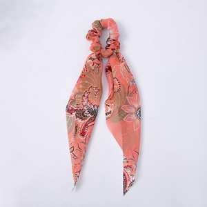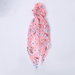 国境を越えた新しいシフォン花柄ヘアバンド、リボン三角スカーフ、高級女性用ヘアアクセサリー、ポニーテールヘアロープ卸売