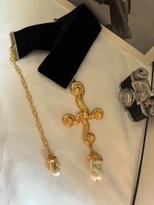 シャパリリ オートクチュール キャットウォーク ヘビーバロック パール 調節可能なベルベット ストラップ ネックレス