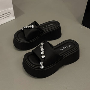 女性の夏のアウターウェアのためのハイエンドのフランスのラインストーンビーチサンダル 2025 新しいファッションシルバー高さ増加厚底サンダル