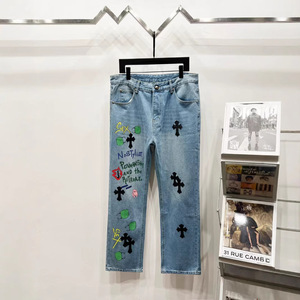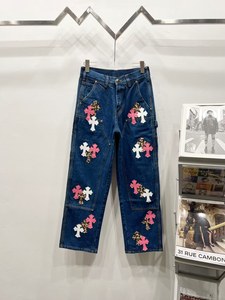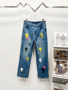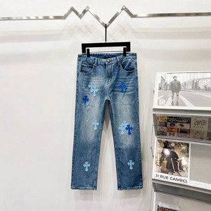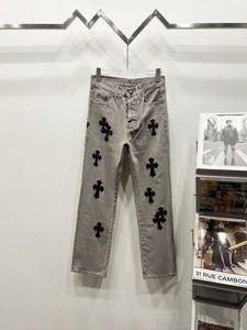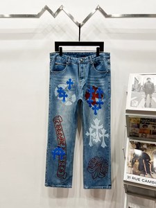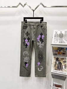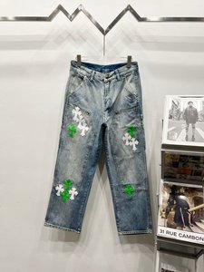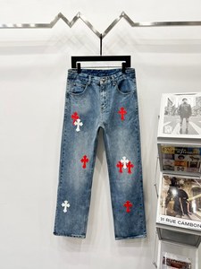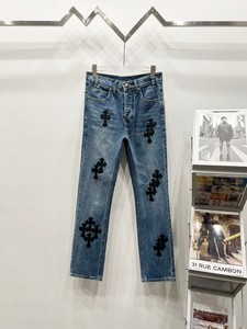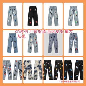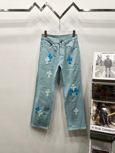 2025 ヘビーデューティーウォッシュデニム CH ウォッシュ加工ヴィジューカラークロスレザージーンズ男性と女性用レザーデニム