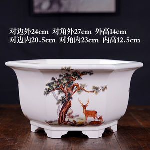 六角形盆栽盆彩绘