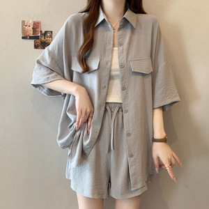 大きいサイズの夏のファッションハイエンドファットmm痩身シャツツーピースセット西洋スタイルカジュアルショーツスーツ女性用150kg