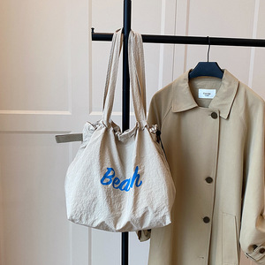 韓国風インス風レターキャンバスバッグ2025新作シンプル軽量巾着トートバッグ大容量カジュアルショルダーバッグ