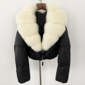 25 ゆったり痩身韓国スタイル冬暖かいファッション小柄なキツネの毛皮の襟厚いショートダウンジャケット女性用