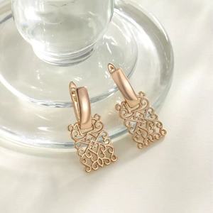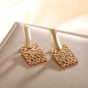 工場直販ジュエリー Amazon クロスボーダージュエリー金メッキ幾何学的なスクエア中空イヤリング女性用ハイエンドイヤリング
