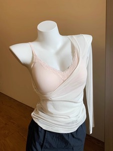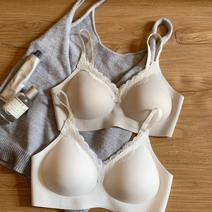 胸が小さい女性向けの快適なレース/シームレス下着、胸パッド付きレースレイヤードキャミソール、プッシュアップブラ