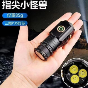 3眼ポータブル小型スチールキャノン照明充電式長距離超高輝度屋外強力なライトミニリトルモンスター