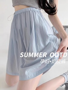 マタニティショーツ、夏用薄手アウターマウンテンパンツ、お腹を締め付けないレディース大きいサイズアイスシルクパンツ、妊娠5分パンツ