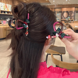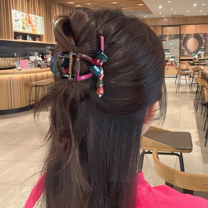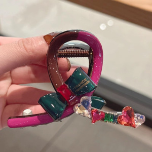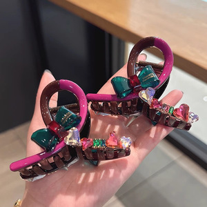 コントラストカラーリボンクリップ女性用 2025 新しいヘアクリップハイエンド後頭部サメクリップ半結びヘアアクセサリー