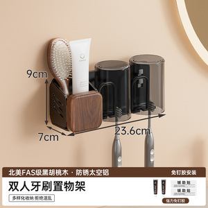 ブラックウォールナット-ダブル歯ブラシヘアドライヤーホルダー-ブラックカップ