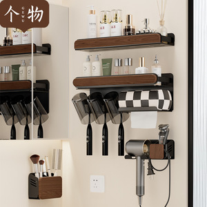バスルーム収納ラック、バスルームシンク、壁掛けバスルーム壁掛けパンチフリーウォールナット収納ラック