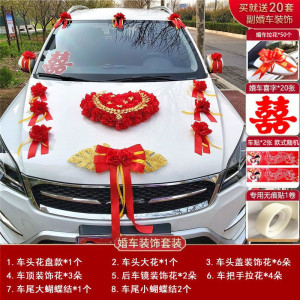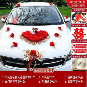 婚车主车装饰车头花结婚礼车队副车布置品套装仿真头车花全套花车