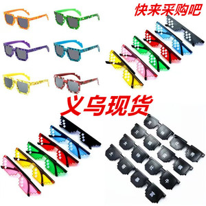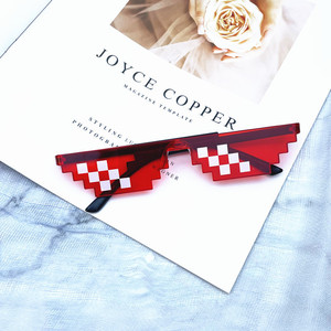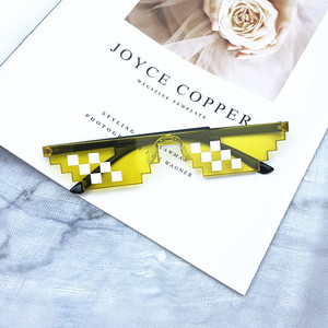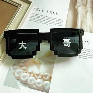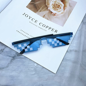 ブラックモザイクメガネカラーチェック柄サングラスピクセルメガネ一体型単列および複列モザイクサングラス