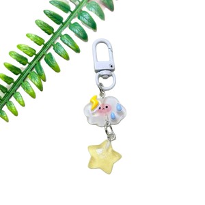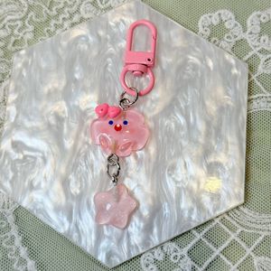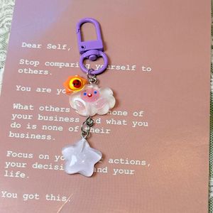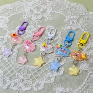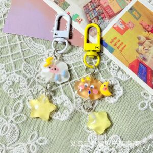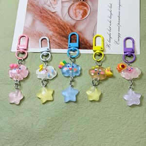 暗闇で光る氷透明キーホルダー星と雲イン漫画ガールハート学生スクールバッグペンダント親友
