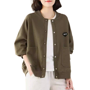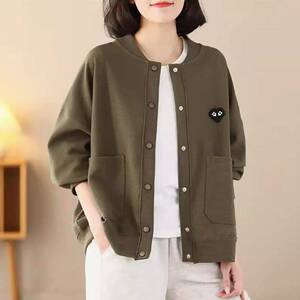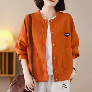 カジュアルスウェットシャツレディース春新作ショートコートカーディガン2025春大きいサイズゆったり万能トップス野球ユニフォーム