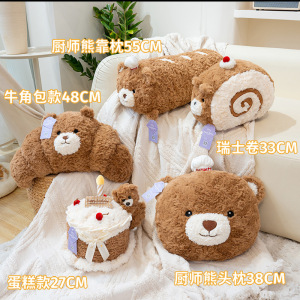 正版熊熊シリーズぬいぐるみ人形創意スイス巻きシェフケーキ熊牛角包人形枕