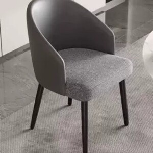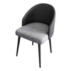 ダークグレーのレザー + グレーのリネンクッション、厚みのある炭素鋼の脚