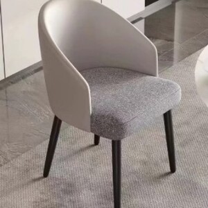ライトグレーのレザー + グレーのリネンクッション、厚みのあるカーボンスチールの脚