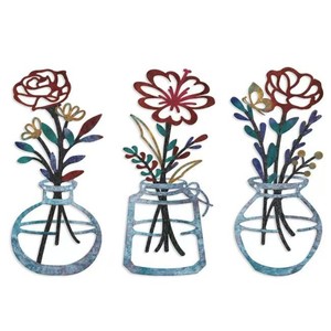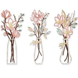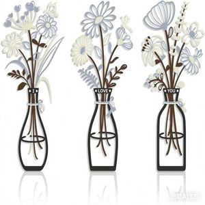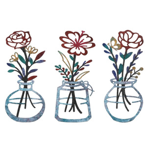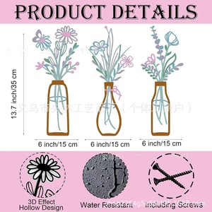 国境を越えた庭園の花、バラ、四つ葉の草、金属製の鉄工品の壁飾り、吊り下げ飾り、庭の地面に飾る置物