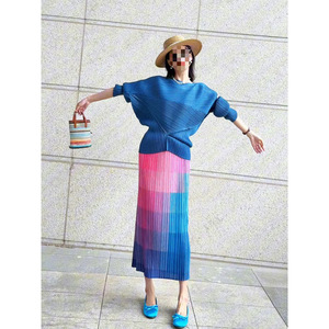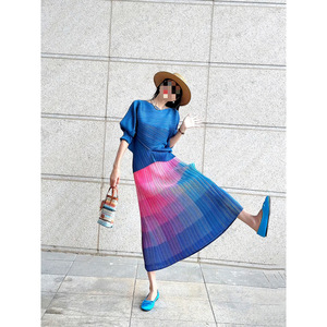ホームスタイル春夏デザインプリーツトップスファッショナブルな2025年新作グラデーションカラースカートロングスーツ