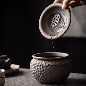 セラミック茶粕タンク、茶洗い、建水フィルター付き家庭用廃水タンク、大型卓上ゴミ箱、お茶入れ、孟茶タンク