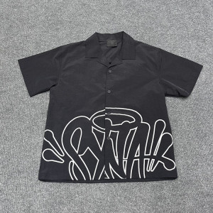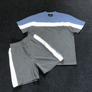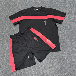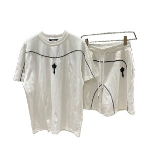 2025 新アメリカンストリートヒップホップ刺繍プリント反射半袖スポーツショーツカジュアル Tシャツスーツ夏