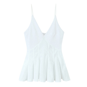 BSK&TRAF レディース 2025 夏新作 シンプル ファッション ポプリン スプライシング ヘムトップ 4174201