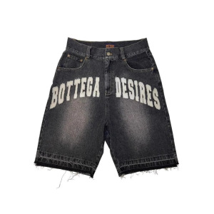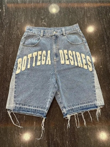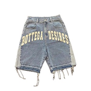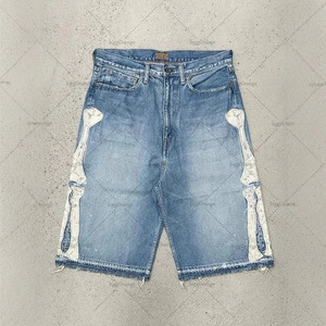 国境を越えた欧米の潮牌刺繍五分デニムパンツ男高街復古骨刺繍ゆるいカジュアルパンツ