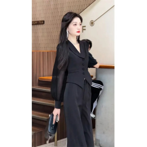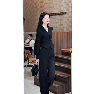 网红时尚潮流套装女2025年春秋新款长袖西装上衣时尚阔腿裤两件套
