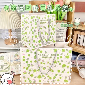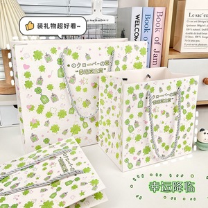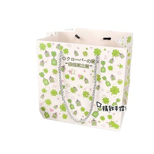 見栄えの良い四つ葉のクローバー白カードハンドバッグクリエイティブ漫画パターン見栄えの良い厚みのある大容量ショッピングバッグ