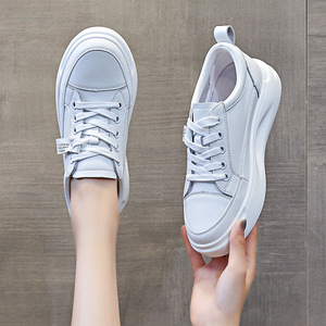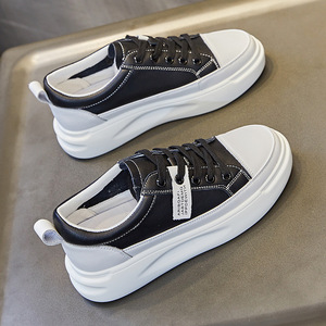 クロスボーダー本革白靴秋の新作厚底婦人靴シングルシューズレディースフラットシューズ黒と白のカジュアルシューズレディーススニーカー