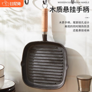 鋳鉄鍋ステーキフライパン特殊ストライプステーキフライパン無塗装家庭用鉄鍋電磁調理器平底ノンスティックパン
