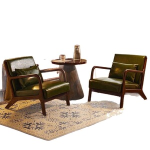 ネット有名人無垢材ソファチェアレトロカフェミルクティーショップレジャーテーブルと椅子シングル小さなソファ