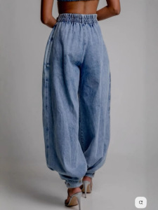 欧米越境アマゾン向けレディース新作夏ハイウエストジッパー付き裾絞りデニムパンツゆったりカジュアルレトロパンツ卸売