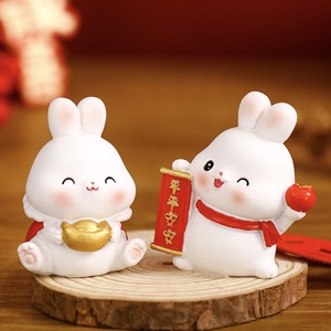 かわいいウサギの祝福車の装飾品クリエイティブかわいいウサギ年干支樹脂工芸品漫画人形ウサギの装飾品