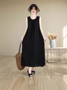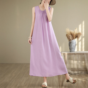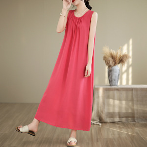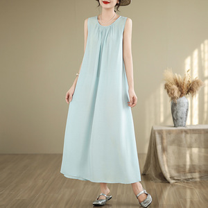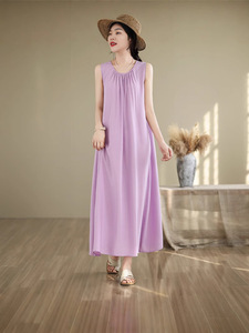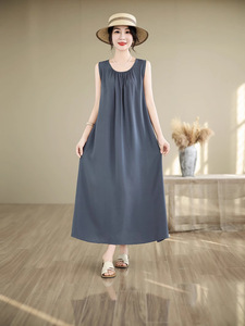 夏薄い中高年母親の綿シルクドレス女性の大きいサイズルーズネグリジェカジュアルホームウェアノースリーブスカート