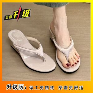 ファッショナブルなトライバルフレンチフリップフロップ女性の身長を伸ばすアウターウェアヒョウ柄厚底サンダル2025春夏新スタイル