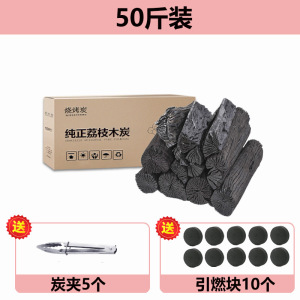 50kg ライチ炭 (チャコールクリップ + 点火ブロック付属) 混合サイズ