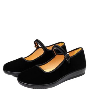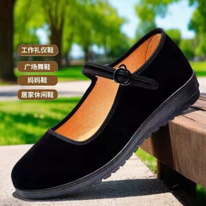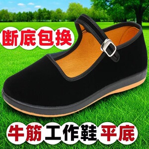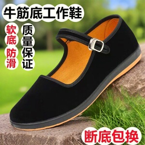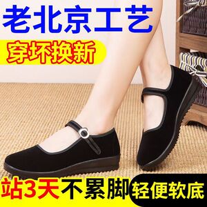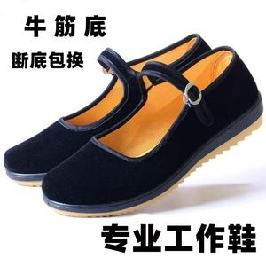 古い北京布靴ホテル作業靴黒の女性の靴牛腱底黒布靴ママの靴黒のベルベットの靴