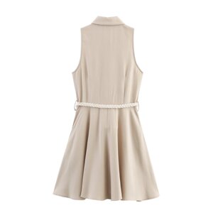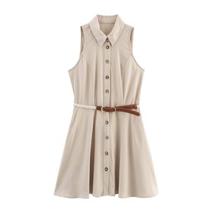 PB&ZA レディース 2025 夏新作 A ラインバージョン ベルト付きラペルミニリネンドレス 5029114